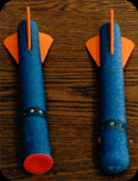 A high performance foam rocket that can be thrown (by hand) at any surface. The tip of the foam rocket holds eight (8) caps that emit a "popping" sound upon impact. A patented "cocking" mechanism allows the user to manually reset between throws. The rocket also has a suction cup on the nose of the rocket allowing it to stick to smooth surfaces.